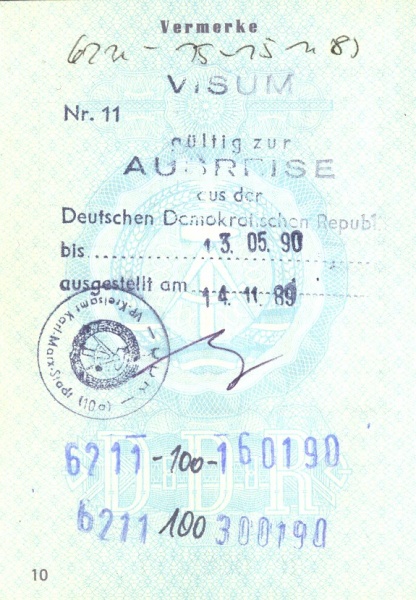 Personalausweis-Visum nach Mauerfall 9.11.1989 und Stempelbeleg über 100 DM Begrüßungsgeld im Westen