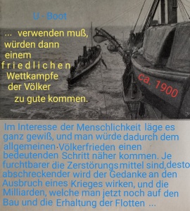 Die ungleichmäßige Entwicklung der kapitalistischen Staaten bis zur Jahrtausendwende die Gegensätze zwischen ihnen gleichzeitig verschärft. Die Großmächte, allen voran das kaiserliche Deutschland unter seinem säbelrasselnden Wilhelm II., strebten nach einer Neuaufteilung der Welt und ihrer Interessenspären. Um der erdrückenden Überlegenheit der Briten zur See Herr werden zu können, schenkte man in Deutschland der Entwicklung neuer Seekriegswaffen ganz besondere Beachtung. Besonders wandte man sich der U - Boot - Waffe zu. 1905 begann man mit dem Bau des ersten hochseefähigen U - Bootes, das am 14. Dezember 1906 als " U 1 " der kaiserlichen Marine ausgeliefert wurde. Bald lief auch die Serienproduktion von Petroleummotoren für die U - Boote an und ab 1912 erfolgte dann de facto der Einbau von moderneren Dieselmotoren. Zu Kriegsbeginn konnte so die Marine über 28 im Dienst und 17 im Bau befindliche U - Boote verfügen (Richard Lakowski - " U - Boote: Zur Geschichte einer Waffengattung der Seestreitkräfte " - Berlin, 1985 - S. 59). Ebenso konzentriert arbeitete man an der Entwicklung der Torpedowaffe. Schon in der zweiten Hälfte der 60 - er Jahre des 19. Jahrhunderts gelang es dem englischen Ingenieur Robert Whitehead, einen Torpedo mit Eigenantrieb zu entwickeln. Natürlich wurden nun spezifische Torpedoboote benötigt, die klein, billig und vor allem schnell sein sollten, um die Torpedowaffe an die großen Panzerschiffe heranzubringen. Sie waren neben den U - Booten auch der Hauptträger dieser neuen Waffenart. Torpedoboote waren nur ein paar hundert tons groß. Sie waren ungepanzert, mit 2 Torpedosätzen zu je 2 Torpedos und einigen Schnellfeuergeschützen bestückt und konnten Geschwindigkeiten um die 36 Knoten erreichen. Auf Grund der Überlegenheit der britischen Royal Navy stand in meinen Augen vor der deutschen Seekriegsleitung die Aufgabe, durch einen rigorosen Einsatz dieser Kleinkampfmittel, sei es durch U - Boote, Minen oder Torpedoboote, die Flotte der Briten zu dezimieren. Folgendes Zitat dazu: