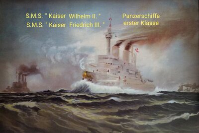 " Zu gleicher Zeit wurden die norddeutschen Bundeswerften zu Kiel und Wilhelmshaven in Betrieb gesetzt und der Eisenschiffbau mit der Inbaunahme der eisernen Panzerschiffe Friedrich der Große und Großer Kurfürst eingeführt. "